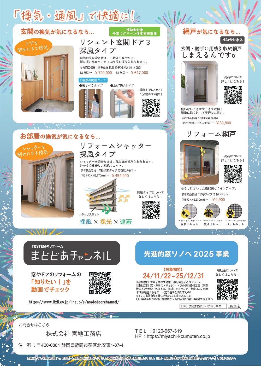 など、他にも開口部のリフォームを行うことで暑い夏を快適に過ごすことが可能です。