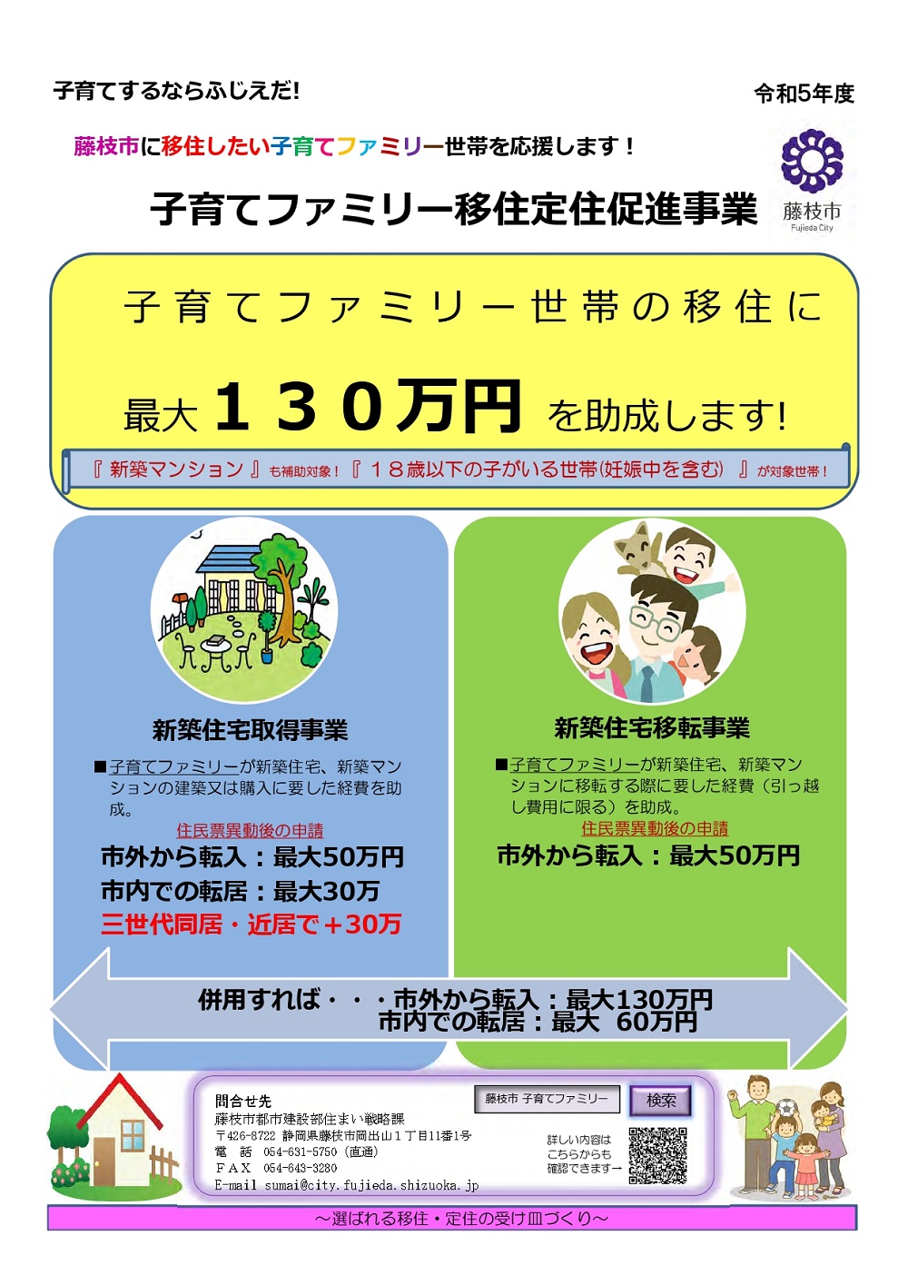 ※藤枝市 子育てファミリー移住定住促進事業費補助金制度より引用