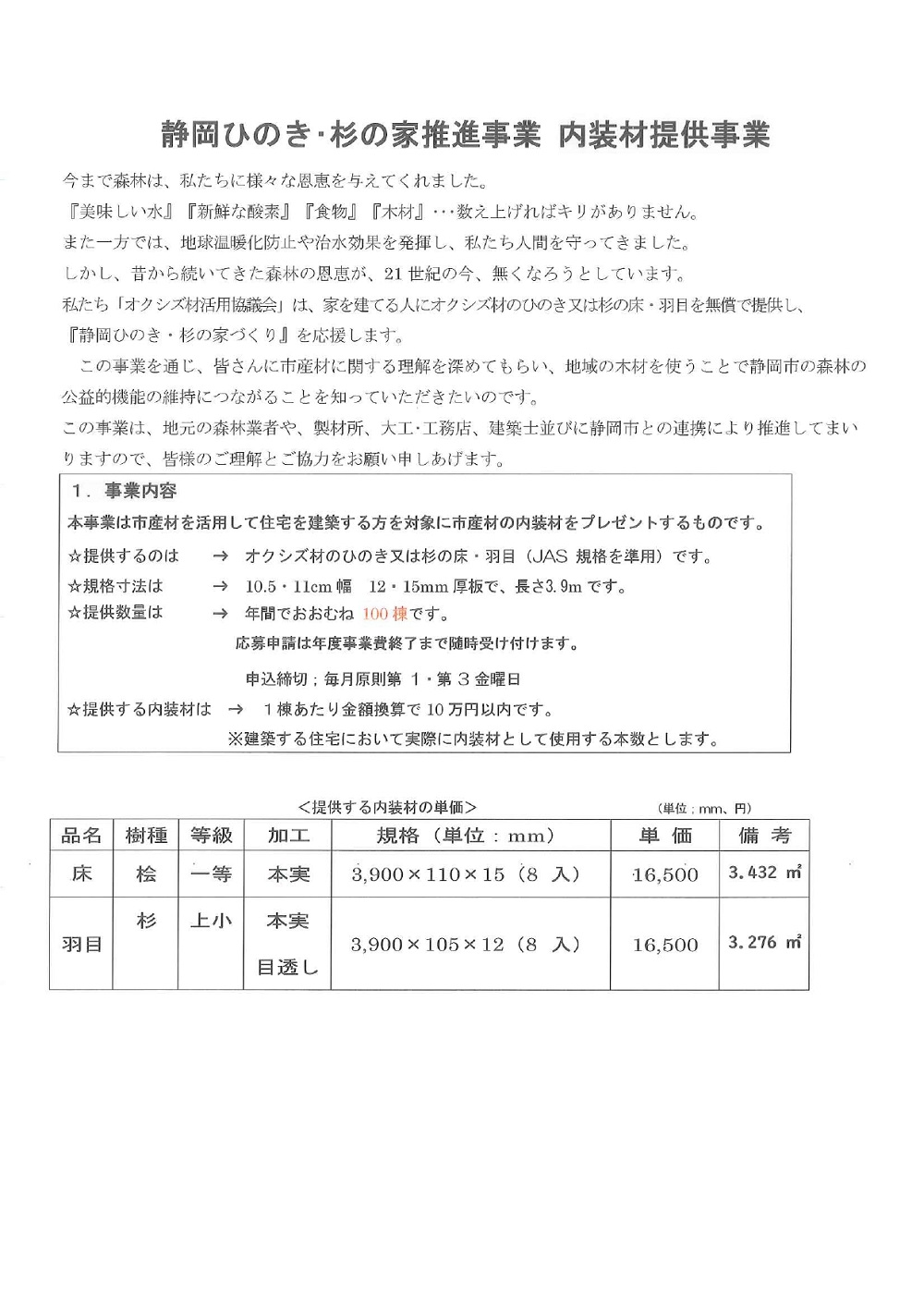 補助金名称 静岡ひのき・杉の家 内装材プレゼント事業