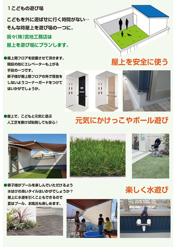 我々(株)宮地工務店は屋上をみんなで楽しいプランにします。