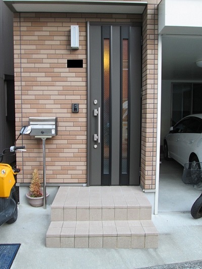 玄関ポーチ階段部の昇降を少しでも楽に出来るように、手摺りの新設を御提案させて頂きました。 |